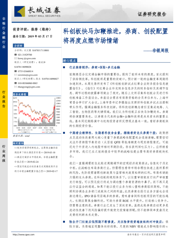 【长城证券】【20190317】非银周报:科创板快马加鞭推进,券商、创投配置将再度点燃市场情绪-34页