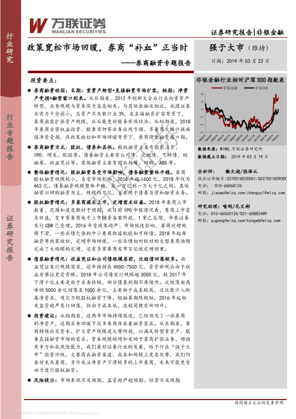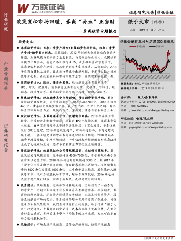 券商融资 市场回暖 政策宽松 资本补充 非银金融