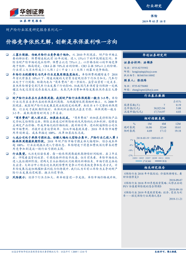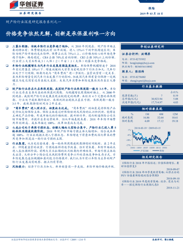 【华创证券】【20190318】财产险行业深度研究报告系列之一:价格竞争依然无解,创新是承保盈利唯一方向-21页