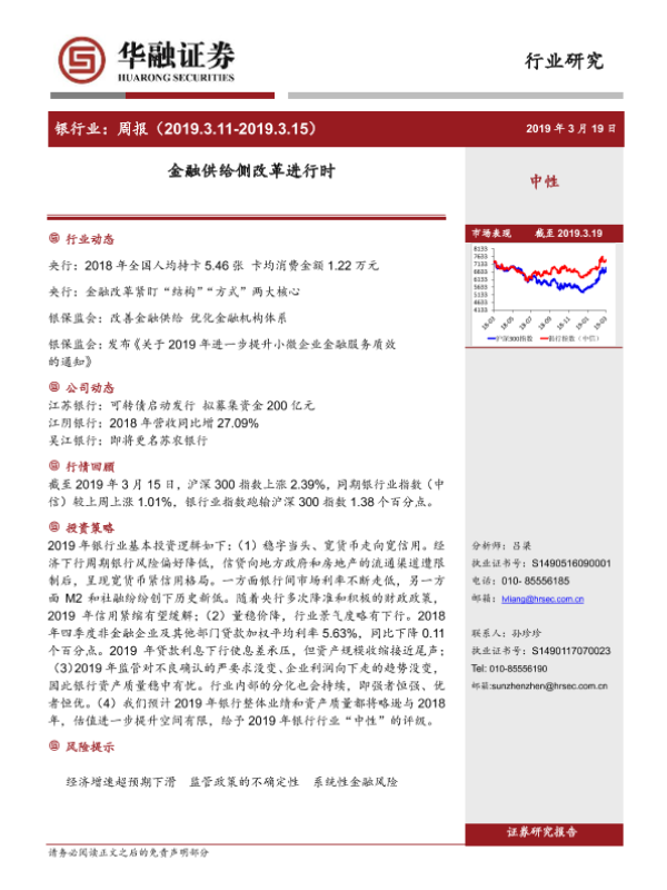 【华融证券】【20190319】银行业周报:金融供给侧改革进行时-20页