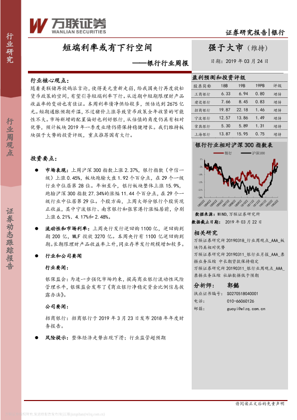 【万联证券】【20190324】银行行业周报:短端利率或有下行空间-11页