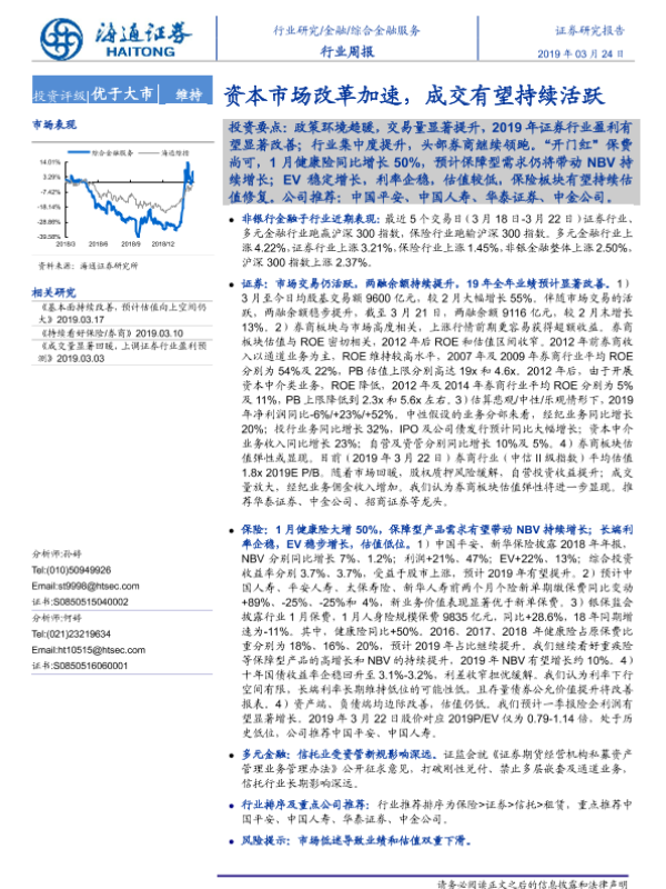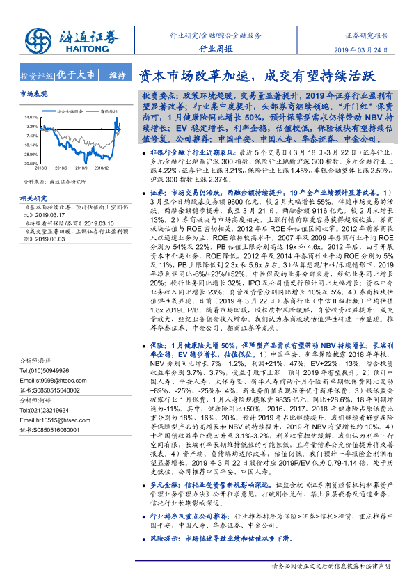 【海通证券】【20190324】综合金融服务行业周报:资本市场改革加速,成交有望持续活跃-13页
