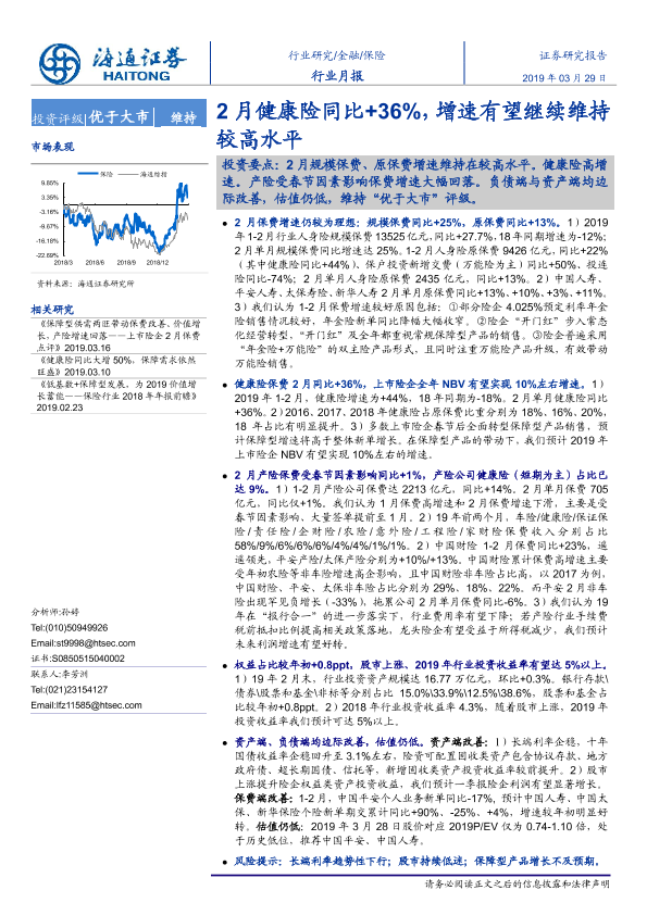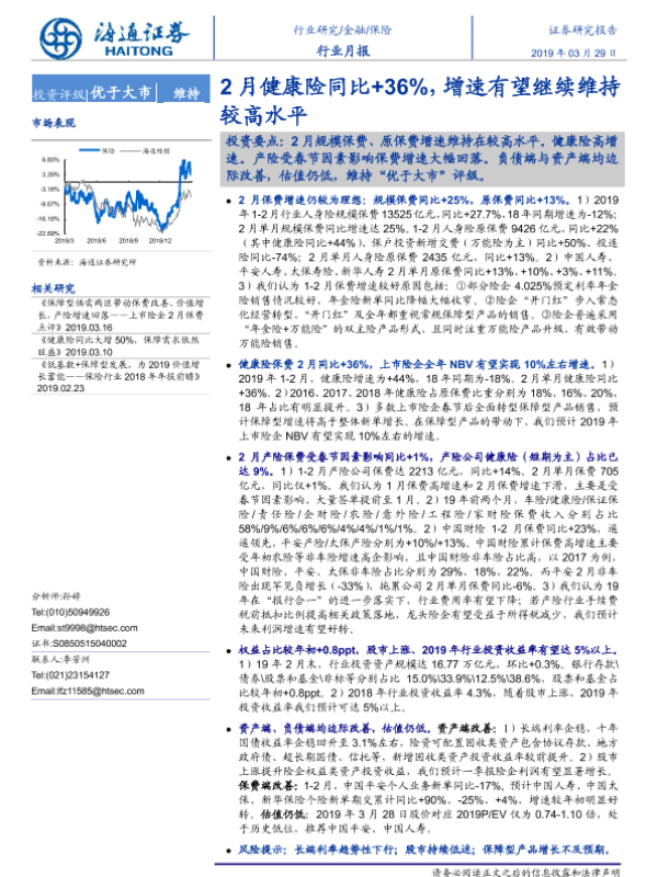 【海通证券】【20190329】2月健康险同比+36%,增速有望继续维持较高水平-5页