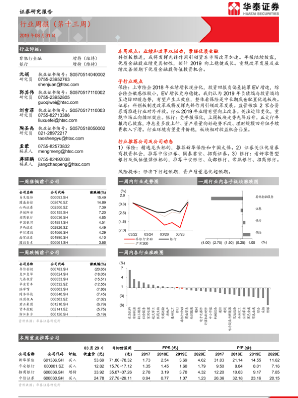 【华泰证券】【20190331】非银行金融行业周报(第十三周)-29页