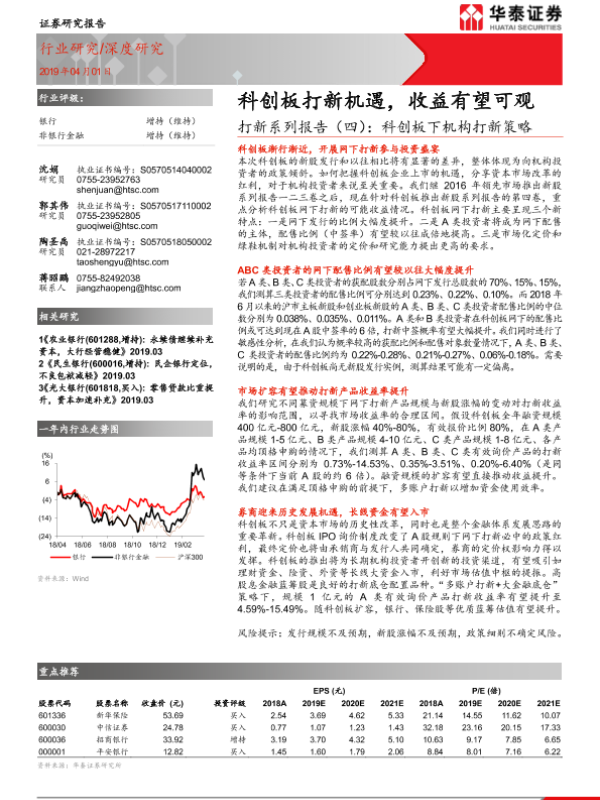 【华泰证券】【20190401】银行行业深度研究:打新系列报告(四):科创板下机构打新策略-19页