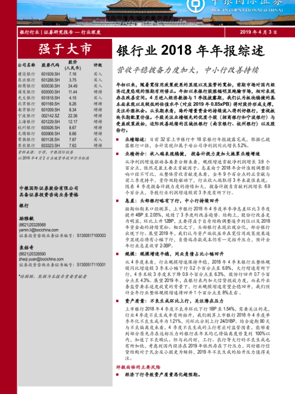 【中银证券】【20190403】银行业2018年年报综述:营收平稳拨备力度加大,中小行改善持续-23页