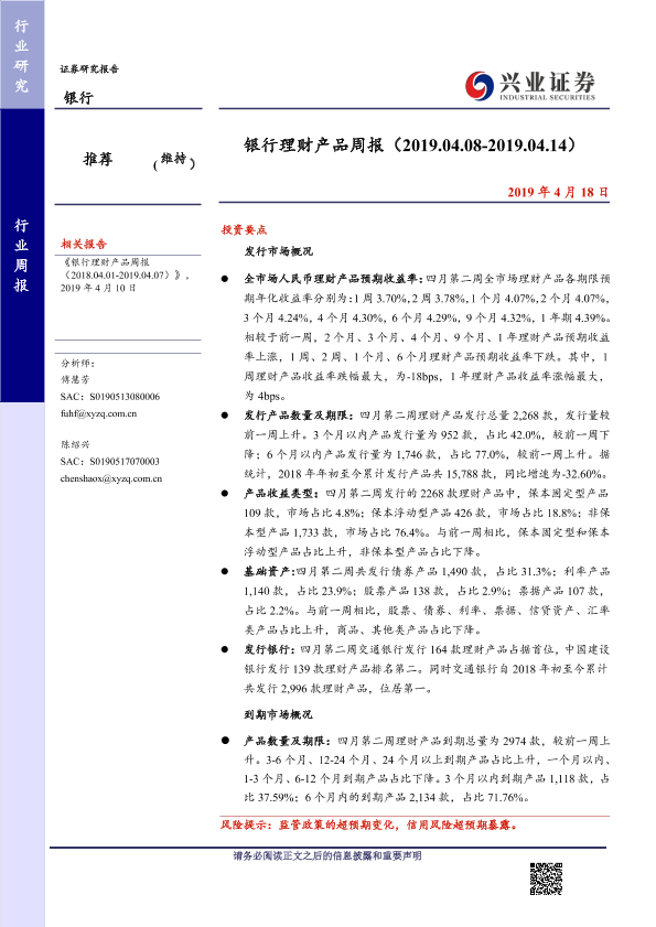 到期市场 发行市场 金融产品 银行理财 预期收益率
