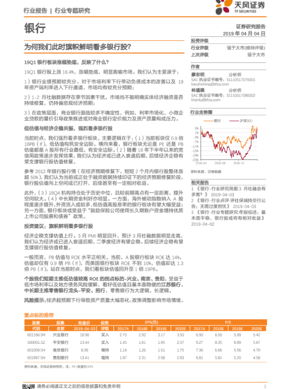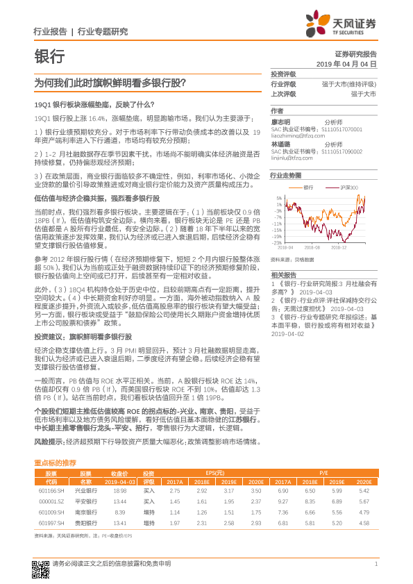 【天风证券】【20190404】银行行业专题研究:为何我们此时旗帜鲜明看多银行股?-16页