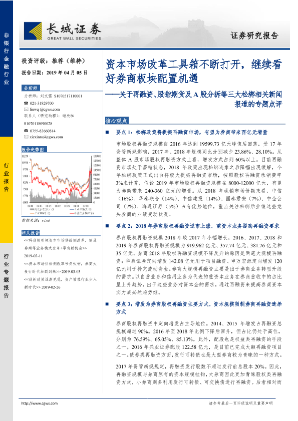 【长城证券】【20190405】非银行金融:关于再融资、股指期货及A股分拆等三大松绑相关新闻报道的专题点评-15页