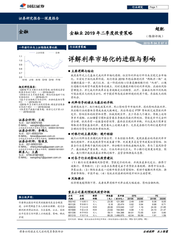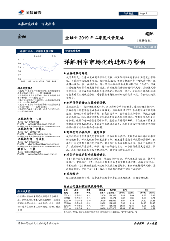 【国信证券】【20190407】金融业2019年二季度投资策略:详解利率市场化的进程与影响-21页