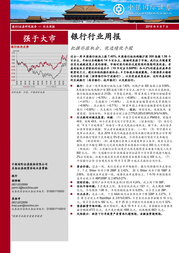 【中银证券】【20190407】银行行业周报:把握补涨机会,优选绩优个股-17页