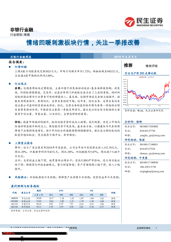 【民生证券】【20190408】非银行金融周报:情绪回暖刺激板块行情,关注一季报改善-10页