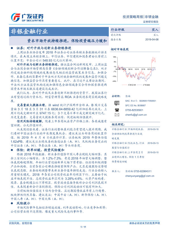 【广发证券】【20190408】非银金融行业:资本市场开放持续推进,保险投资端压力缓和-11页