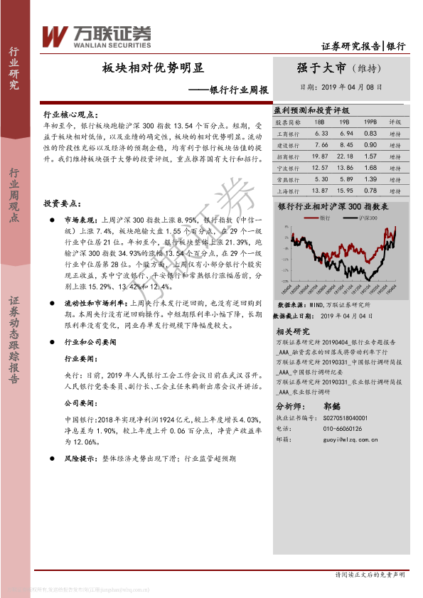 【万联证券】【20190408】银行行业周报:板块相对优势明显-11页