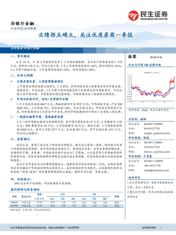 【民生证券】【20190410】非银行金融行业研究:业绩拐点确立,关注优质券商一季报-6页