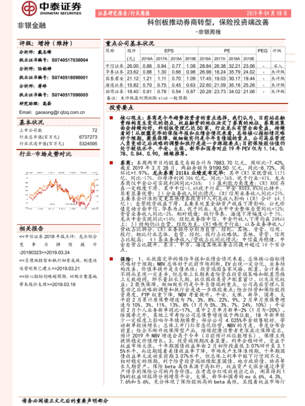 【中泰证券】【20190408】非银周报:科创板推动券商转型,保险投资端改善-18页
