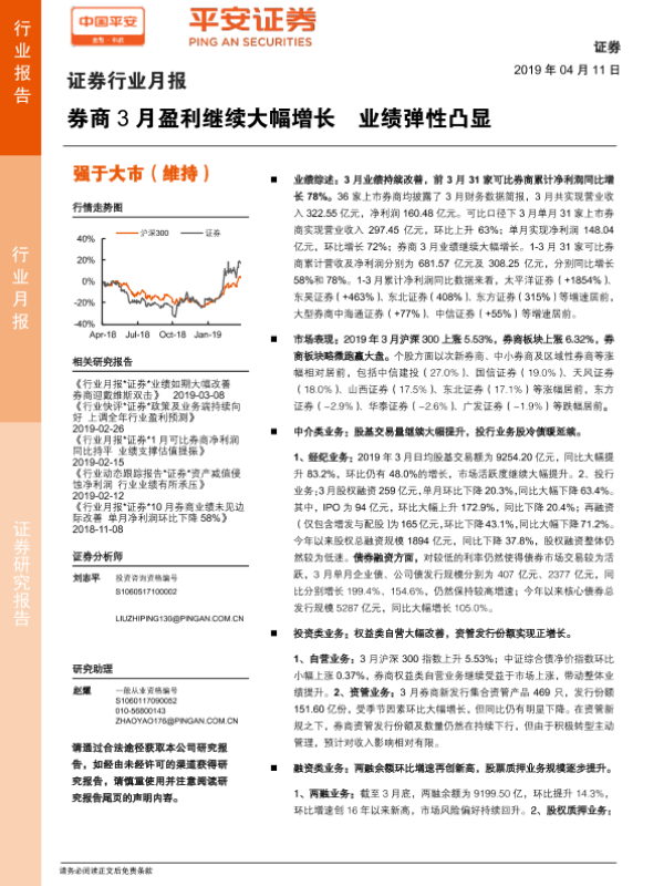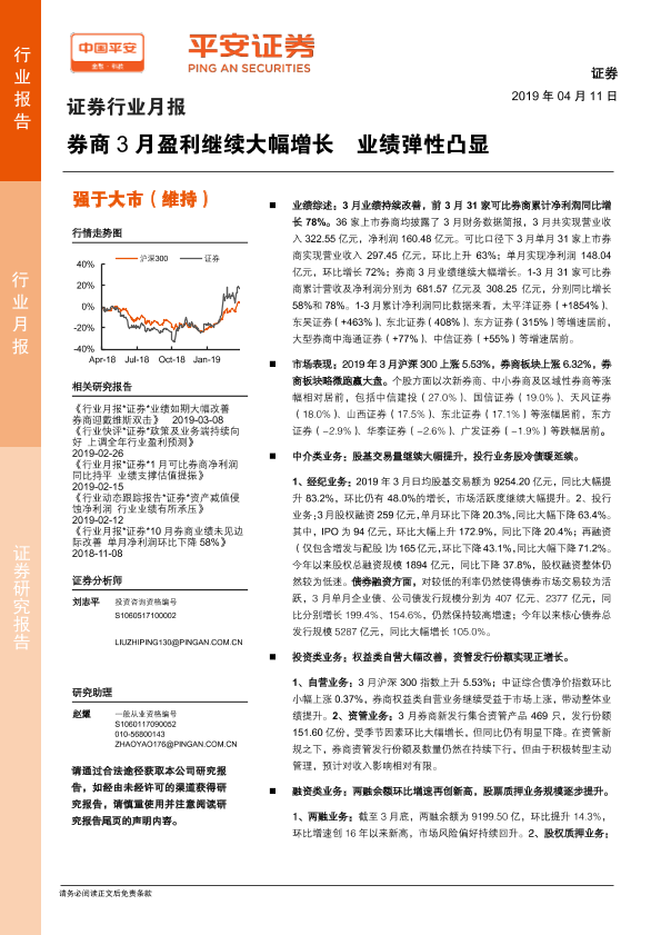 【平安证券】【20190411】券商3月盈利继续大幅增长 业绩弹性凸显-11页