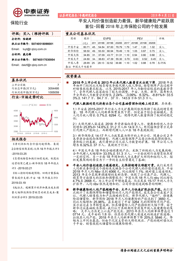 代理人 价值创造 保险行业 平安 新华保险