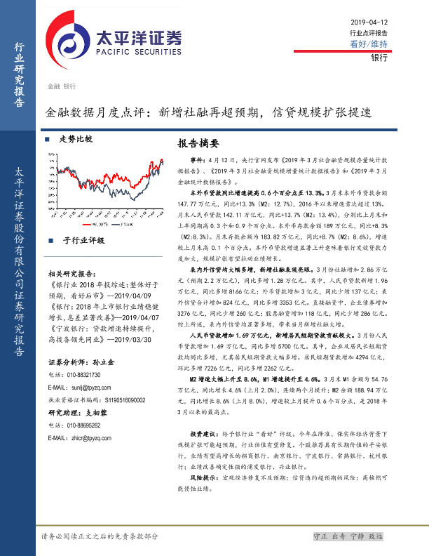 【太平洋证券】【20190412】金融数据月度点评:新增社融再超预期,信贷规模扩张提速-10页
