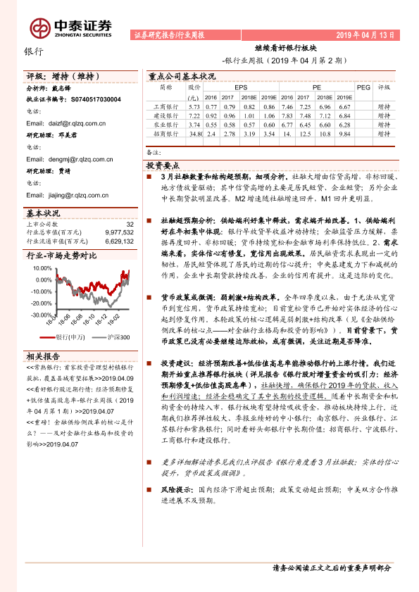 【中泰证券】【20190413】银行业周报:继续看好银行板块-16页