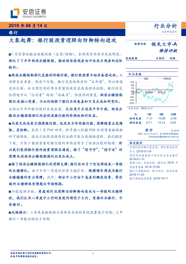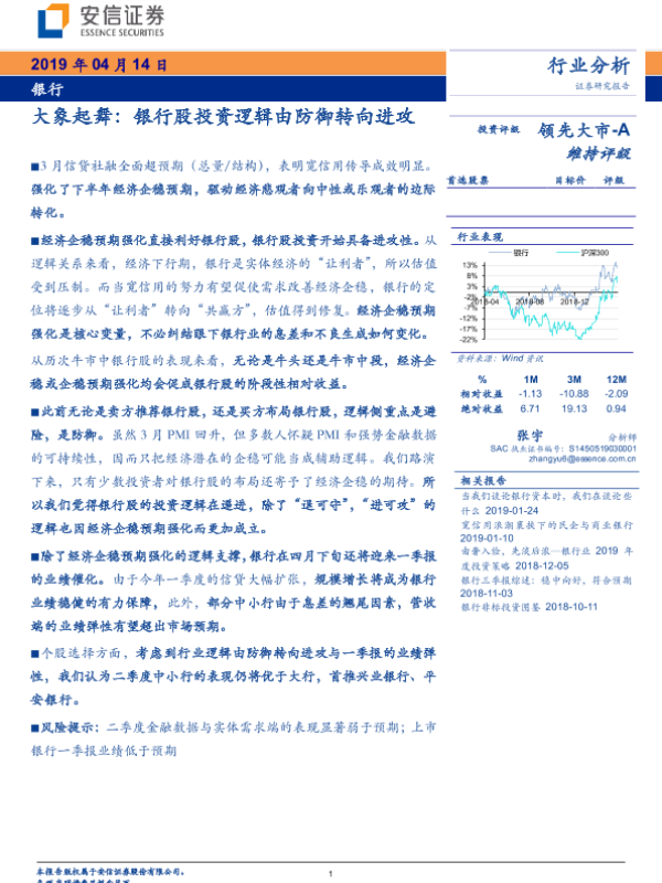 【安信证券】【20190414】大象起舞:银行股投资逻辑由防御转向进攻-15页