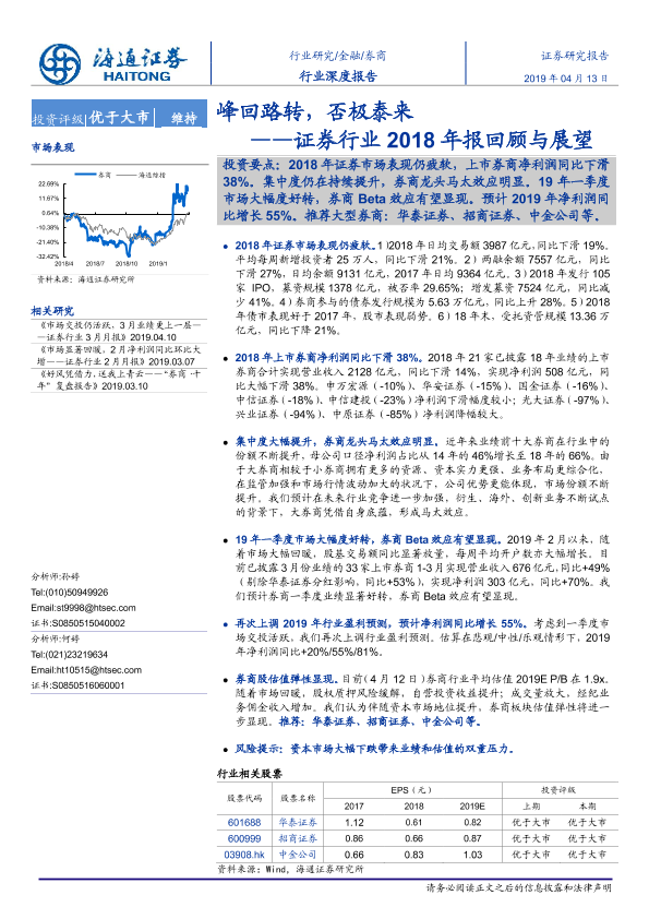 【海通证券】【20190413】证券行业2018年报回顾与展望:峰回路转,否极泰来-24页