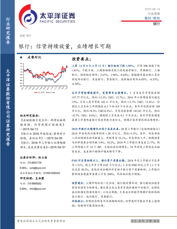 【太平洋证券】【20190414】银行:信贷持续放量,业绩增长可期-13页