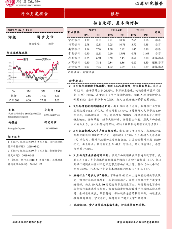 【财信证券】【20190415】银行行业月度报告:传言无碍,基本面好转-11页