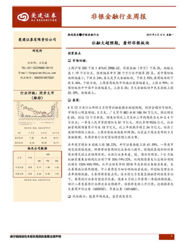 【爱建证券】【20190415】非银金融行业周报:社融大超预期,看好非银板块-11页