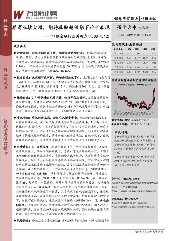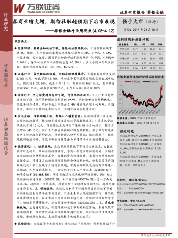 【万联证券】【20190415】非银金融行业周观点:券商业绩大增,期待社融超预期下后市表现-14页