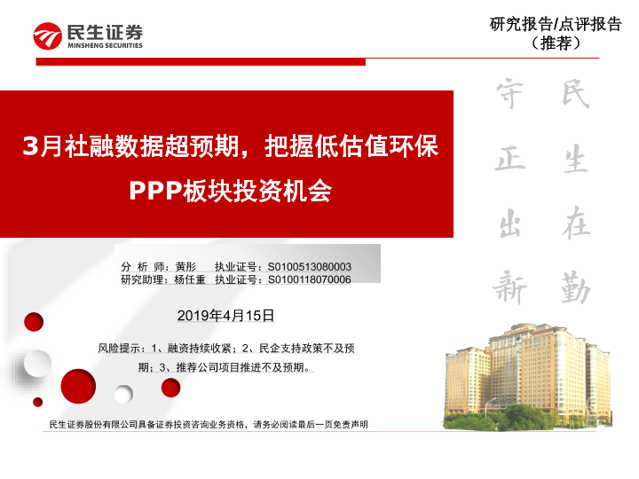 【民生证券】【20190415】3月社融数据超预期,把握低估值环保PPP板块投资机会-5页