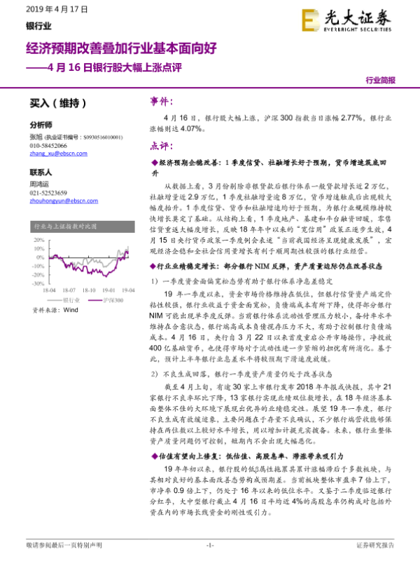 【光大证券】【20190417】4月16日银行股大幅上涨点评:经济预期改善叠加行业基本面向好-3页