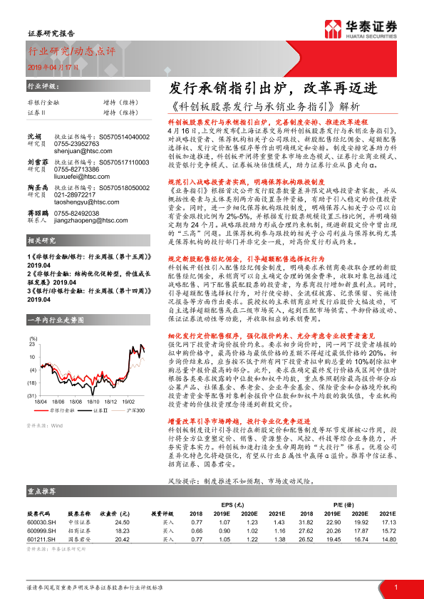 【华泰证券】【20190417】非银行金融:《科创板股票发行与承销业务指引》解析:发行承销指引出炉,改革再迈进-7页