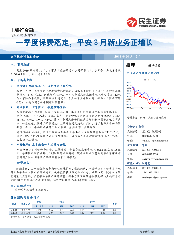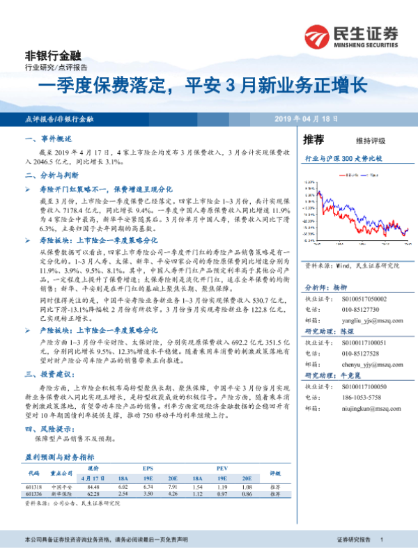 【民生证券】【20190418】一季度保费落定,平安3月新业务正增长-5页