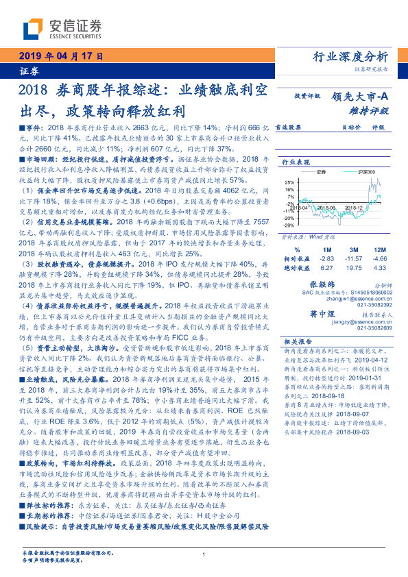 【安信证券】【20190417】2018券商股年报综述:业绩触底利空出尽,政策转向释放红利-30页