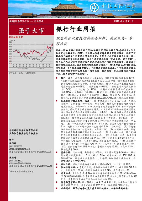 【中银证券】【20190421】银行行业周报:政治局会议重提结构性去杠杆,关注板块一季报表现-18页