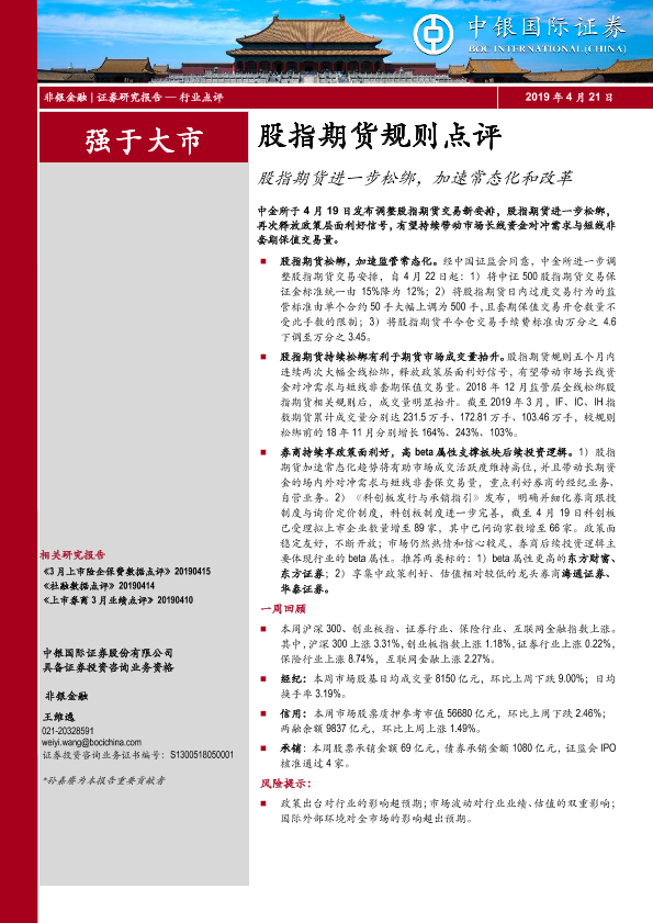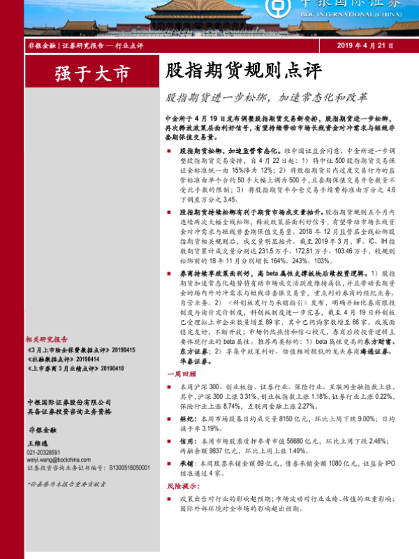 【中银证券】【20190421】非银金融:股指期货规则点评:股指期货进一步松绑,加速常态化和改革-13页