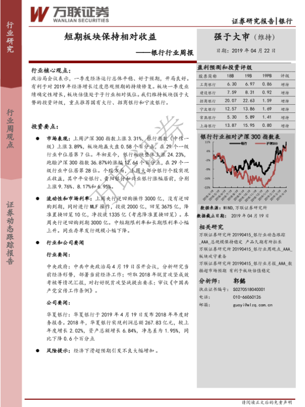 【万联证券】【20190422】银行行业周报:短期板块保持相对收益-11页