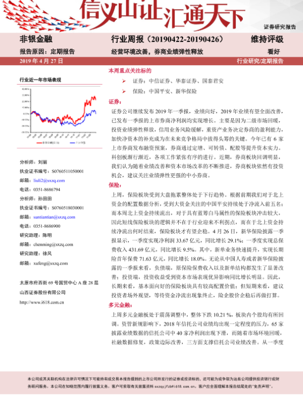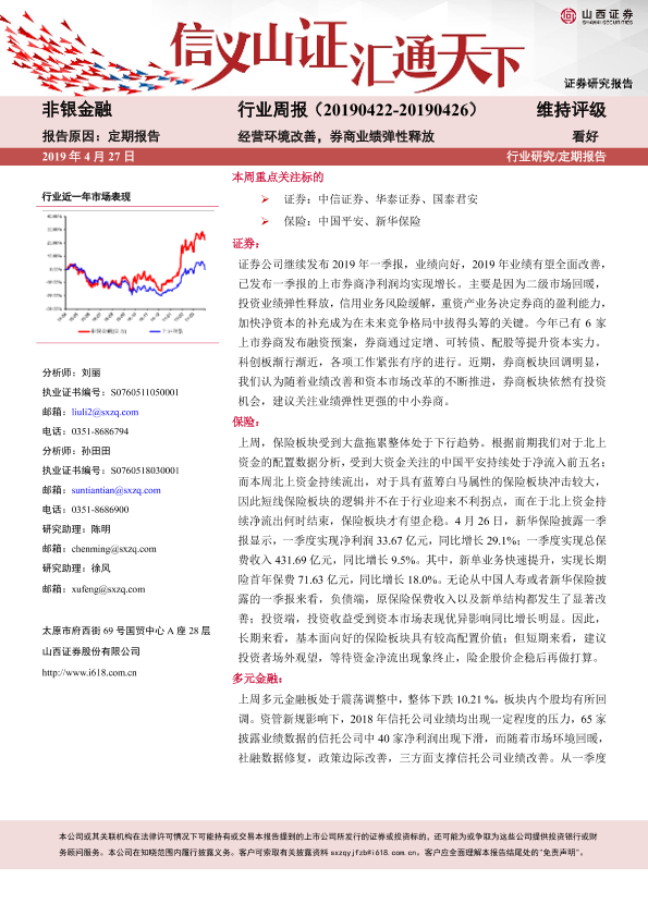 【山西证券】【20190427】非银金融行业周报:经营环境改善,券商业绩弹性释放-7页