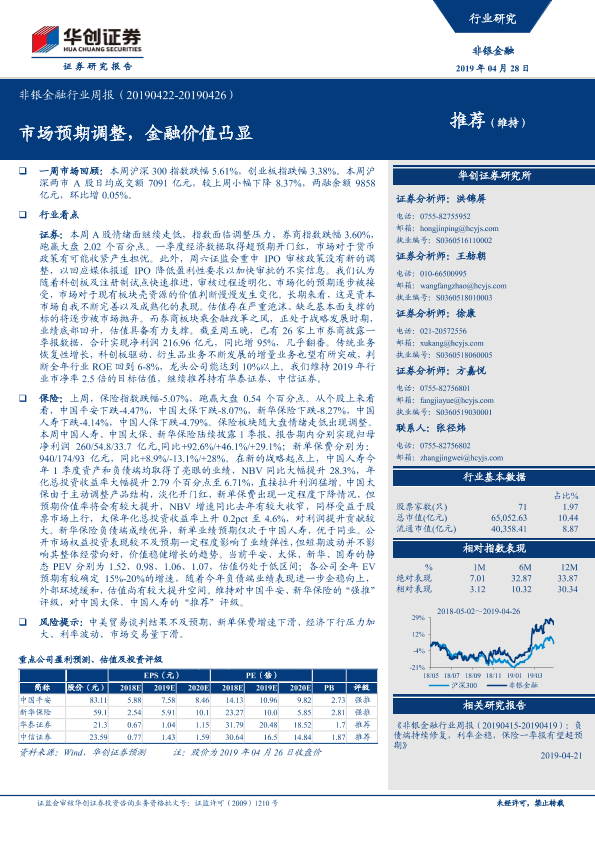 【华创证券】【20190428】非银金融行业周报:市场预期调整,金融价值凸显-20页