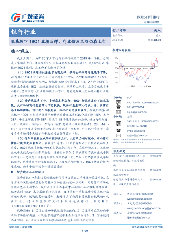 【广发证券】【20190429】低基数下19Q1业绩反弹,行业信用风险仍在上行-20页