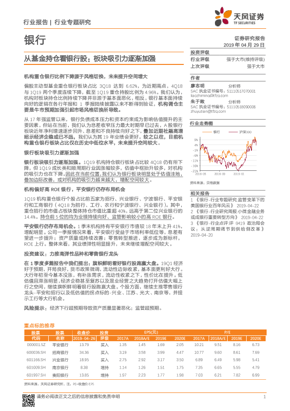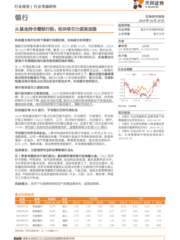【天风证券】【20190429】从基金持仓看银行股:板块吸引力逐渐加强-9页