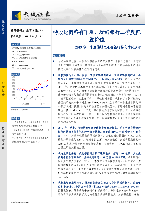【长城证券】【20190424】2019年一季度偏股型基金银行持仓情况点评-10页