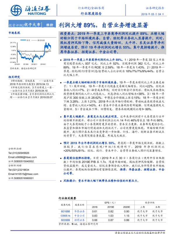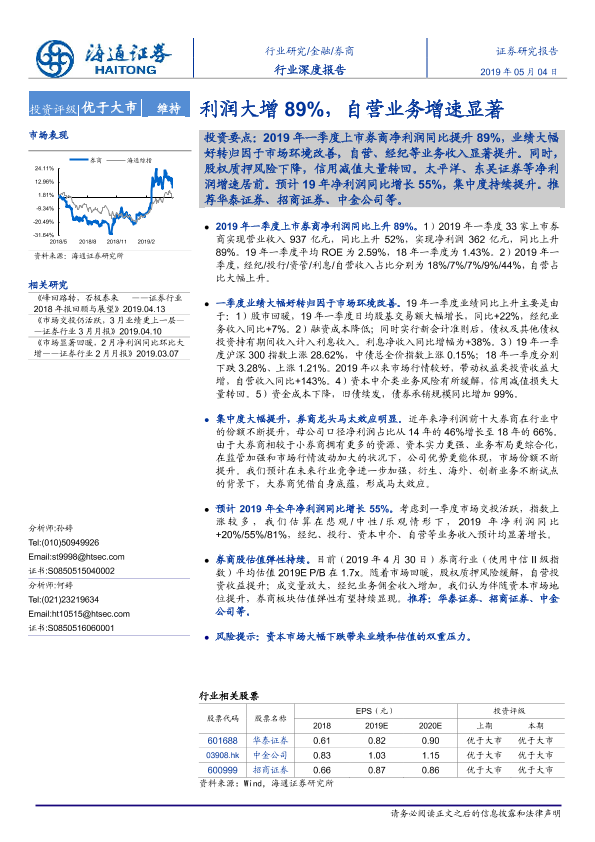 【海通证券】【20190504】券商行业深度报告:利润大增89%,自营业务增速显著-22页
