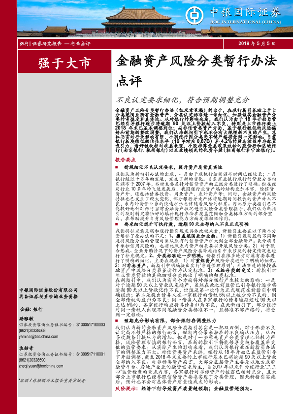 【中银证券】【20190505】金融资产风险分类暂行办法点评:不良认定要求细化,符合预期调整充分-8页