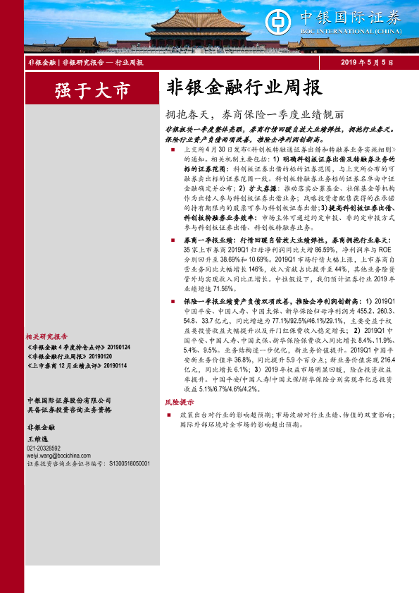 一季度业绩 保险 券商 科创板 非银金融