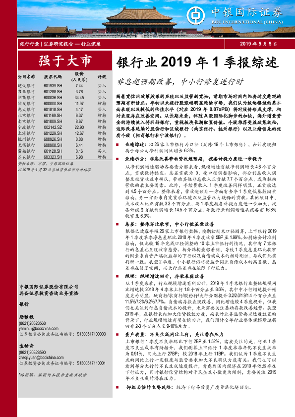 【中银证券】【20190505】银行业2019年1季报综述-25页