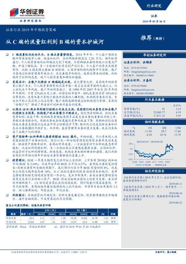 【华创证券】【20190506】证券行业2019年中期投资策略:从C端的流量红利到B端的资本护城河-17页