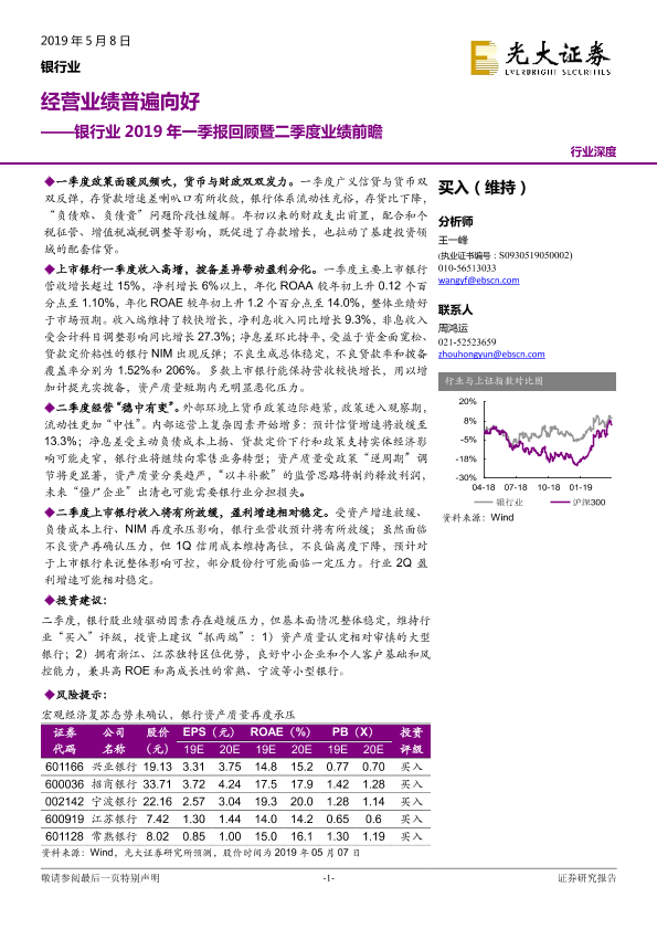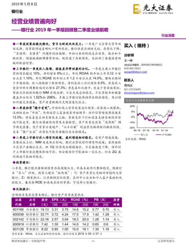 【光大证券】【20190508】银行业2019年一季报回顾暨二季度业绩前瞻:经营业绩普遍向好-30页