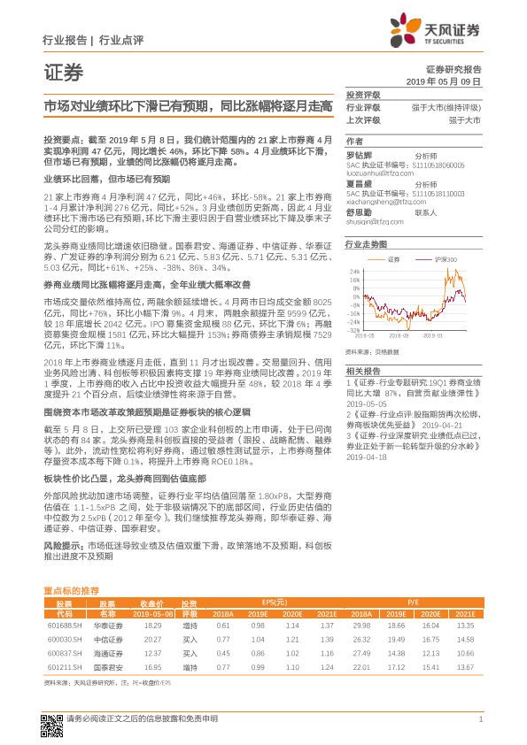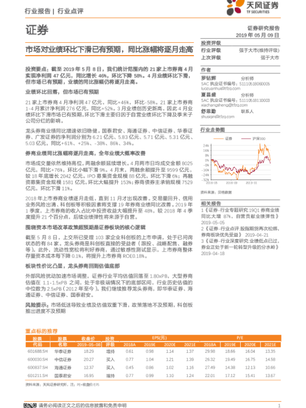 【天风证券】【20190509】证券行业点评:市场对业绩环比下滑已有预期,同比涨幅将逐月走高-5页